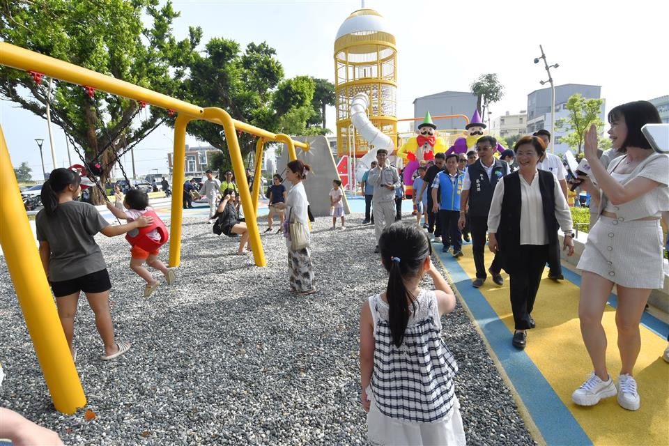 彰化縣政府為推動「一鄉鎮一特色公園」,於二林鎮選定和平公園辦理環境設施全面改善。去(113)年11月動工,今(18)日上午舉行啟用典禮,縣長王惠美、二林鎮長蔡詩傑及各級民代與會。王縣長表示,感謝中央和議會的支持,總共投入3,300萬元,內政部補助350萬元,縣府在議長謝典霖及所有議員的支持下,自籌2,950萬元。和平公園兒童遊戲場佔地超過1,000坪,從二林精密機械園區發想,選擇太空科技為主題,打造成一個「星球探險樂園」,希望為二林鎮再添親子同樂、長幼共享的休憩場域。