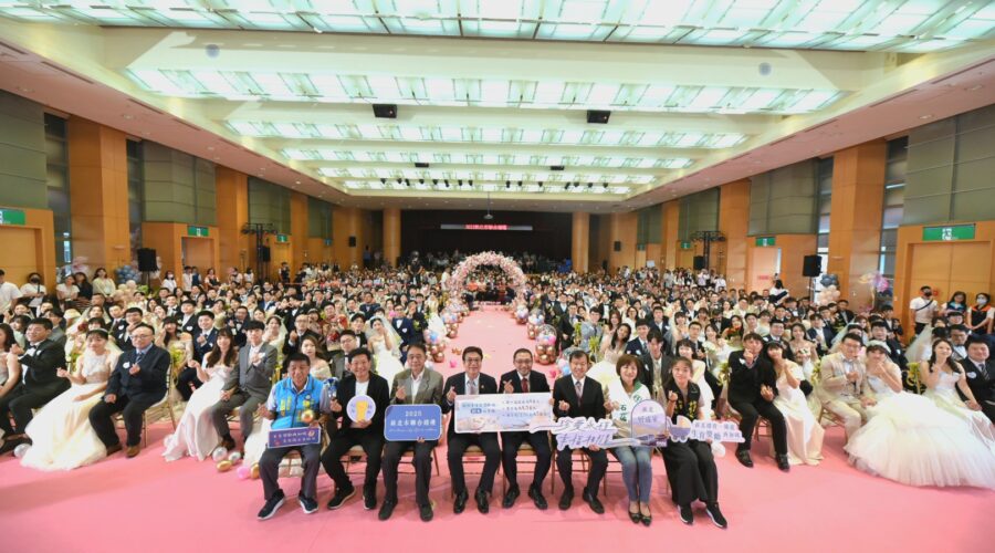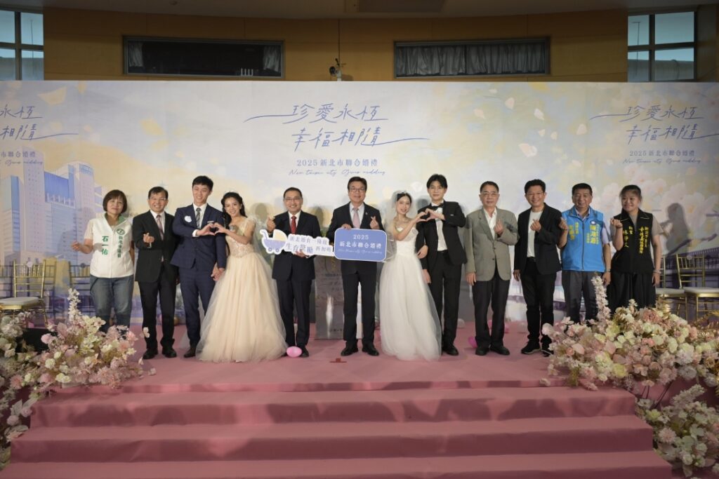2025新北市聯合婚禮今(19)日於新北市政府浪漫登場,102對新人在市長侯友宜、副市長劉和然的見證下,互許終身、交換誓言,齊聲喊出「我願意!」,現場洋溢著滿滿幸福與祝福,溫馨氣氛瀰漫整個會場。