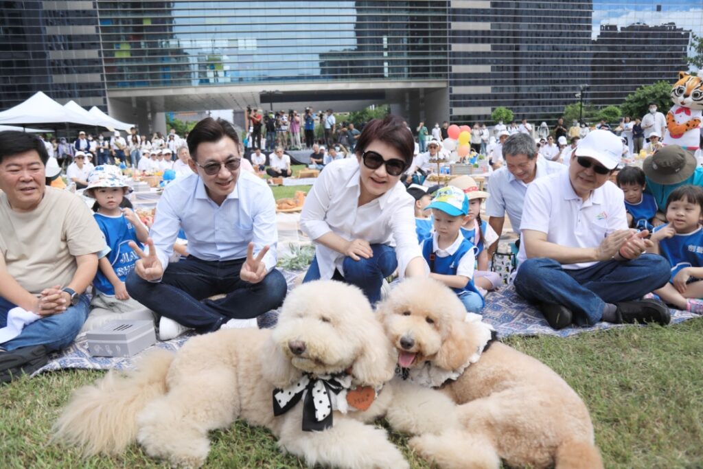 今日野餐日記者會在新市政公園草地上舉行,盧市長與孩子們一起席地而坐,許多民眾配合今年「草地閱讀」、「永續生活」、「文青手作」、「音樂合奏」、「野餐美味」及「汪喵報到」六大主題,秀出專屬自己的野餐穿搭,立法院副院長江啟臣及多位台中市府首長也分享私人藏書,現場書卷味十足。