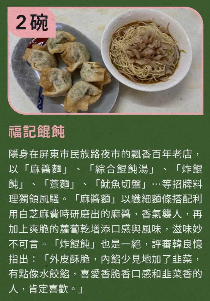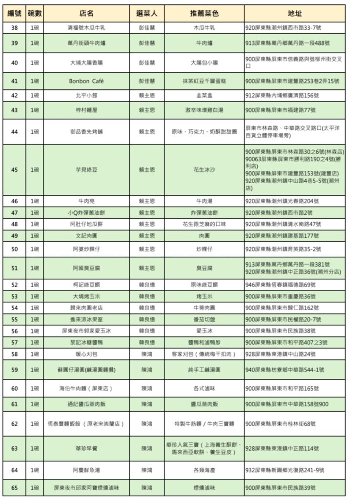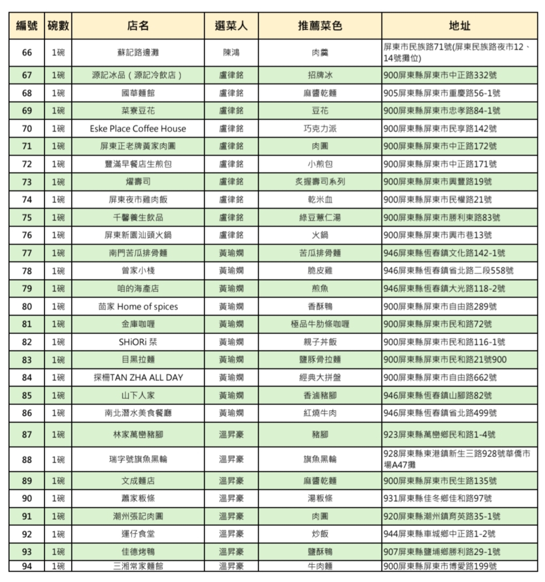 屏東100碗美食名單揭曉!十位名人、專家共同票選出94家優質美食店家