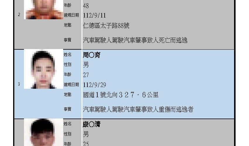 為提升交通安全友善空間,台南市制定高風險駕駛事件資訊公開作業原則,透過主動公開高風險駕駛事件資訊維護交通安全,今(21)日公布第13批高風險駕駛名單共11人,其中有3人涉嫌肇事逃逸致人死傷的駕駛人,交通局呼籲駕駛人除要避免高風險駕駛行為,也要保持防禦駕駛的觀念,才能確保行車用路安全。