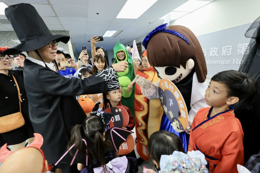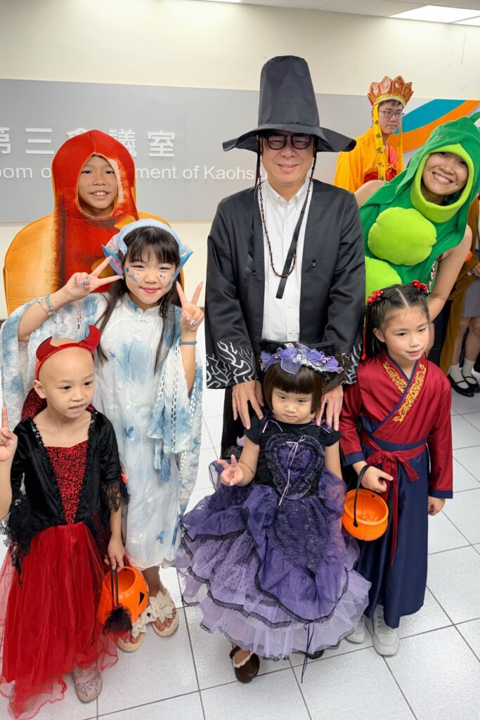 「不給糖就搗蛋!」今(21)日高雄市政會議開始前,精心穿戴萬聖節服裝、造型的小朋友及家長,開心與變裝成動畫電影裡隊長造型的陳其邁市長互動,藉此預告市府教育局舉辦的「2025高雄萬聖節」,10月31日至11月2日將在衛武營國家藝術文化中心登場。陳其邁表示市府會做最好的準備,活動將比往年更精彩,來高雄衛武營過萬聖節是唯一選擇,歡迎全國爸爸媽媽小朋友一定要來、不要錯過。