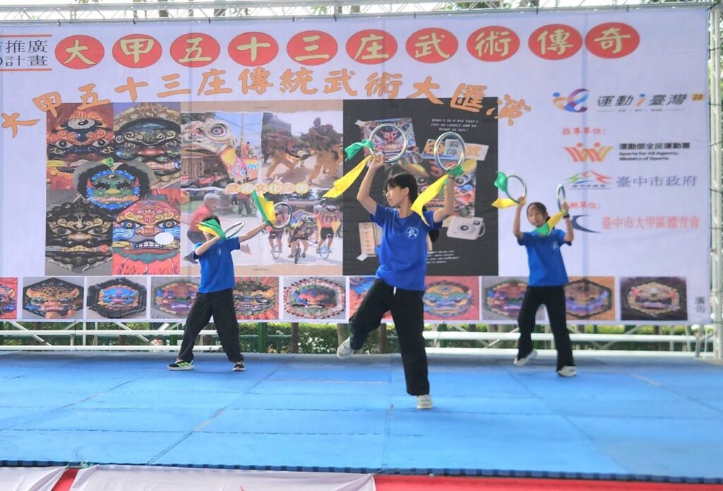 為推廣大甲地區獨具風采的傳統武術文化與全民運動風氣,今(25)日台中市政府運動局與台中市大甲區體育會於大甲體育場共同舉辦第十四屆「大甲五十三庄武術傳奇-傳統武術技藝大匯演」。運動局長游志祥代表市長盧秀燕出席,期盼透過此次技藝匯演,讓民眾深入認識大甲傳統武術的文化底蘊,更期盼吸引年輕世代投入習武行列,讓在地武術精神薪火相傳,發揚光大。