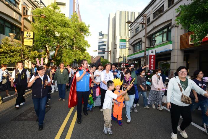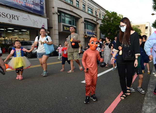 隨後縣長鍾東錦、頭份市長羅雪珠、副議長張淑芬也分別變裝為伯爵、兔子警官與小朋友們一起參加「萌鬼出行」萬聖節變裝踩街嘉年華活動,在熱鬧的歡笑聲中,提前感受萬聖節的氛圍。