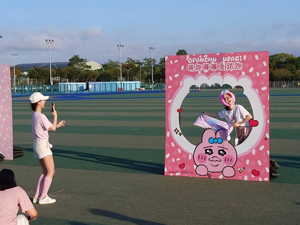 運動局說明,在市區中央球場,褲褲兔以「努力生活、可憐又可愛」的形象療癒登場,即使淚眼汪汪、氣喘吁吁,也要奮力奔跑的模樣引起粉絲共鳴。賽事設有3.5K親子路線與多個拍照打卡點,讓大小朋友盡情合影留念,氣氛熱烈。「萌趣褲褲兔路跑」現場則由運動局專門委員黃欣樺代表出席,特別戴上兔耳造型髮飾與跑者同場起跑,掀起粉絲尖叫聲。
