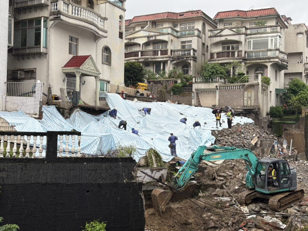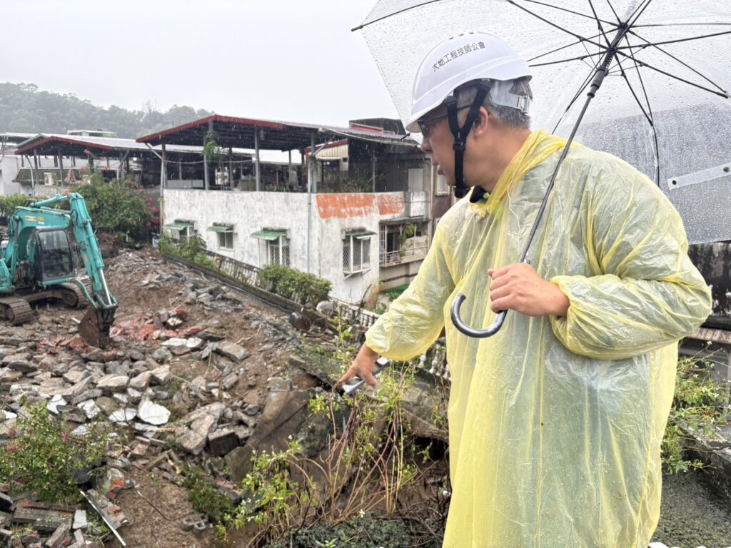 工務局長馮兆麟指示搶災團隊做好整備及應變資源。馮兆麟表示,今日會在擋土牆上方接設水管引流,邊坡也覆蓋土方與帆布,減少雨水滲入擋土牆,並利用雨間隙空檔加速邊坡搶災工程。市府掌握天候及監測數值變化,一切以社區居民安全為優先,提早積極應對,守護民眾家園安全。