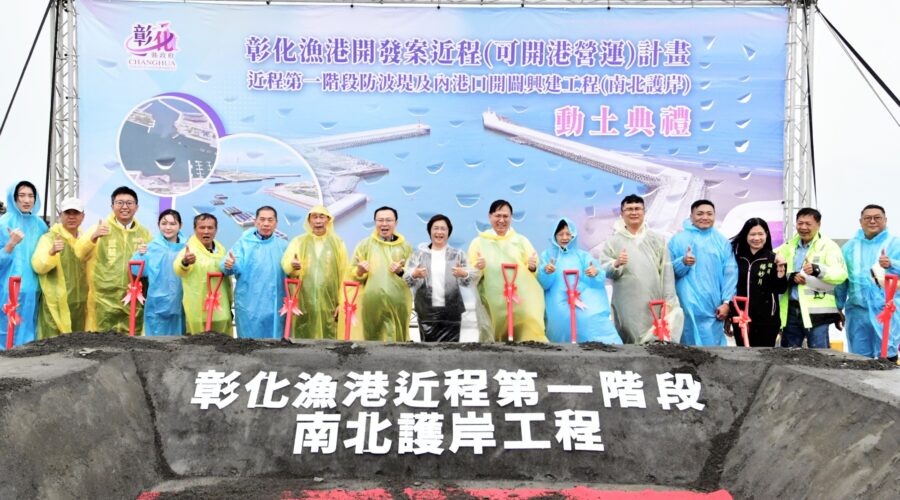 彰化縣政府積極推動漁業建設,今(28)日在鹿港鎮彰濱產業園區西北角的彰化漁港舉行「彰化漁港開發案近程(可開港營運)計畫近程第一階段防波堤及內港口開闢興建工程(南北護岸)開工動土典禮」,縣長王惠美、地方民意代表及漁民團體與會,共同見證啟動的時刻。工程範圍包含南北兩側護岸建設及基礎改善,工期預計600日曆天,將於116年下半年竣工。完工後將能提升港區防災功能,也確保漁船停泊及作業更為安全。