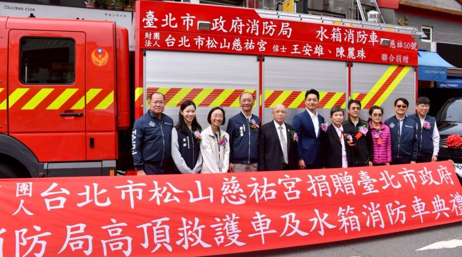 松山慈祐宮於10月29日上午假該宮舉辦「天上聖母重陽飛昇1038週年三獻大典」,並於活動中捐贈臺北市政府消防局高頂一般型救護車2輛、大型水箱消防車及小型水箱消防車各1輛,由蔣萬安市長親自出席接受捐贈並頒贈感謝狀。