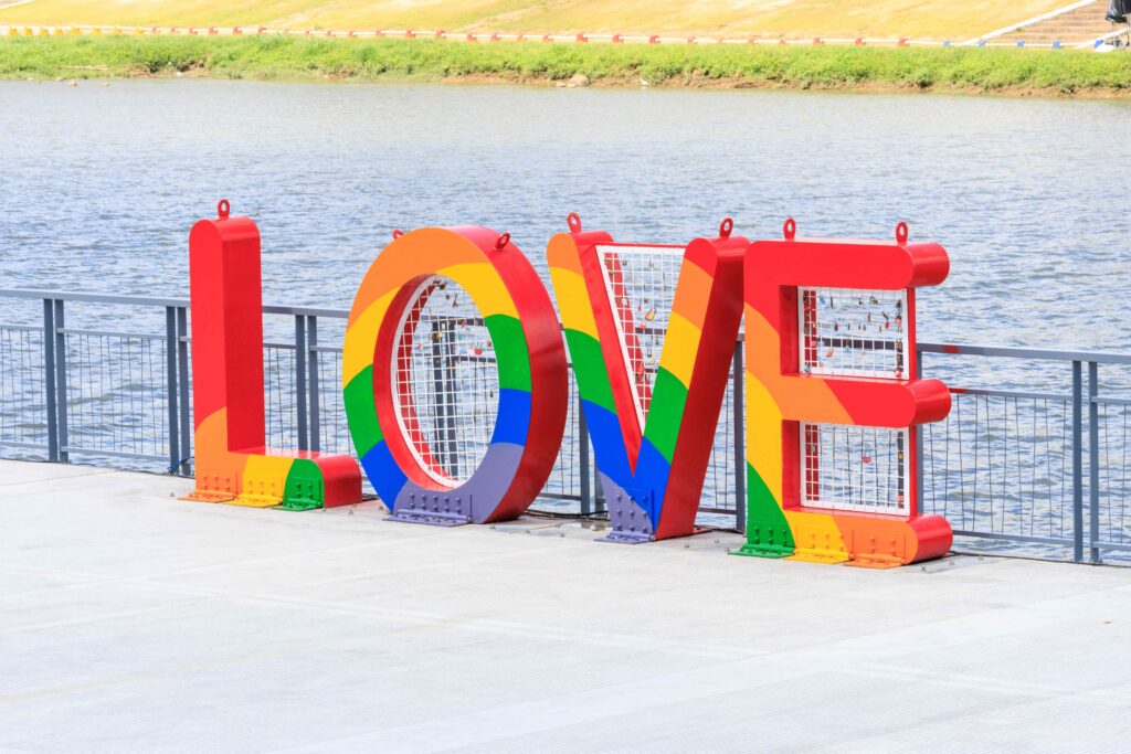 水利處工務科表示,打卡拍照熱點「彩虹與愛情意象的藝術打卡牆」已更新,歡迎情侶來留下專屬戀情的愛情鎖。而「彩色LOVE裝置藝術」移的新位置更靠近水岸,拍照時可將「彩色LOVE裝置藝術」和彩虹橋一網打盡,讓彩虹橋美麗的更明顯,不再渺小!更加分的是,鏡頭轉向另一邊,還可同框麥帥二橋,拍下不同角度的美照,創造令人難忘的河濱美好回憶。