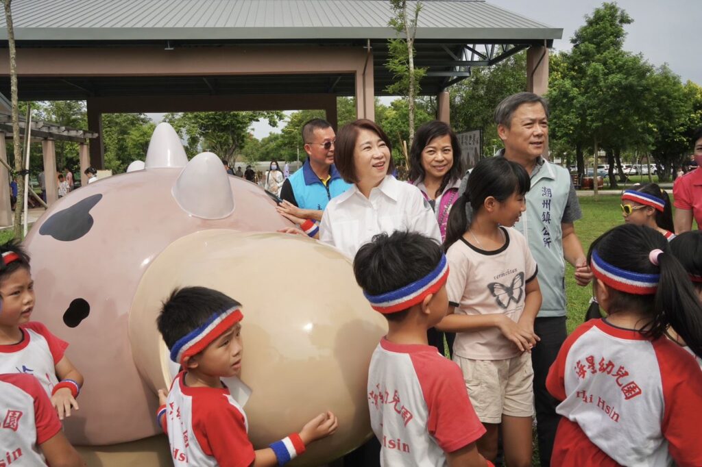 縣長周春米表示,謝謝藝術家徐至宏打造兼具生態環保意識的八隻怪獸,與孩子們分享創意與樂趣,她說,潮好玩幸福村自111年打造至今已突破百萬人次到訪,園區內除了設有共融公園遊戲場、國立科學博物館的常設展外,後續將持續建置托嬰中心與日照中心,讓屏中地區成為幸褔社區園地,打造全年齡、平日與假日休閒的好去處。