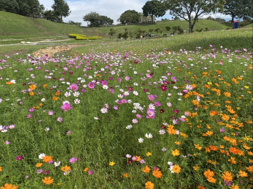 建設局長陳大田表示,后里環保公園的波斯菊花田雖面積不大,但花色混搭、花形輕盈,襯以11月溫暖陽光與藍天草地,畫面柔美如詩;加上落羽松林正值轉色初期,層次色彩交疊,展現秋日專屬的迷人韻味,成為市民野餐、散步、賞景的熱門去處。