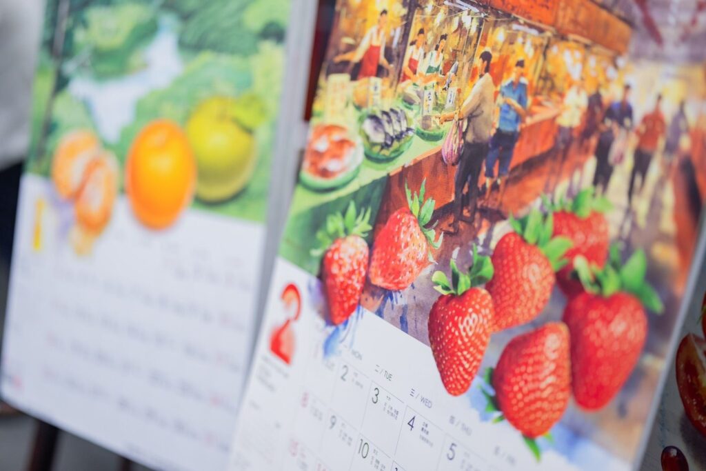 設計總監蕭青陽表示,今年桃園農產月曆由多位臺灣水彩畫家共同創作,融合農村風光與在地文化,描繪桃園四季豐收景致。團隊歷時半年走訪各地農村與漁港,以藝術筆觸捕捉桃園農業的多樣面貌與生命力。他感謝農業局支持,讓藝術與農業融合,讓「桃園農產月曆」成為城市形象象徵。