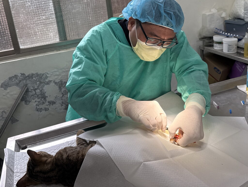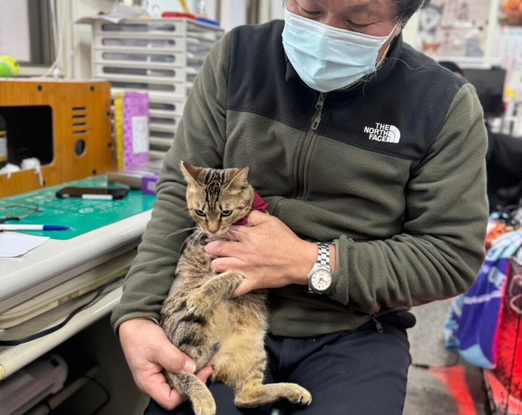 新北市動保處日前接獲通報新店區下坑子口路有隻虎斑黑貓,疑似車禍受傷屁股流血,動保處隨即派員將受傷黑虎斑貓帶回毛寶貝醫療中心進行檢傷醫療,經醫療中心李獸醫師檢查後,發現虎斑黑貓尾巴末端傷口嚴重潰爛,應該是在圍牆行走、鑽洞或穿越狹窄空間時遭尖銳物切傷所造成,須進行斷尾手術,以避免傷口感染導致下半身癱瘓,黑虎斑貓經過輸液治療及手術後已恢復健康,由住在中和的李先生認養,有了幸福溫暖的家。