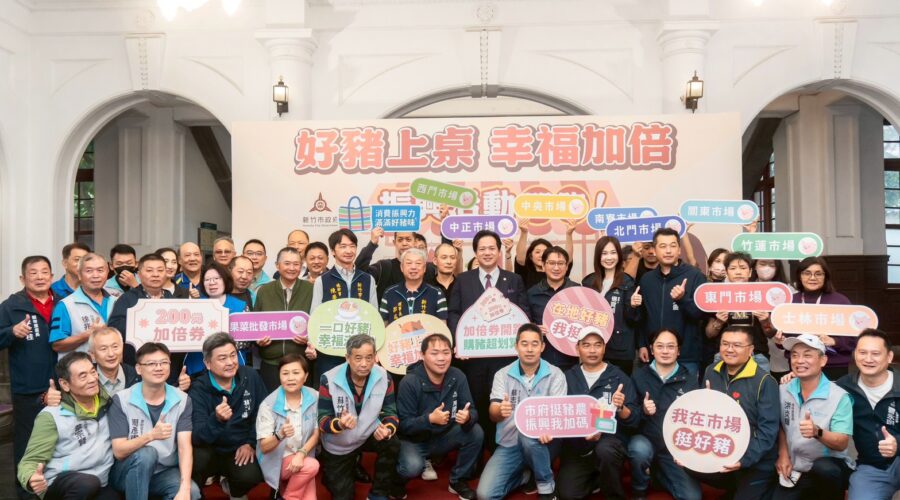 全國非洲豬瘟疫情控制有成!中央日前宣布全國疫情達成清零目標,活豬禁運及禁宰措施全面解除,市場供應也已恢復溫體豬肉。為協助相關產業度過疫情期間造成的損失,新竹市政府除免收1個月攤租外,並積極協助業者申請中央補助。為進一步振興豬肉及相關產品銷售,市府11日在市府大廳舉辦「好豬上桌 幸福加倍」振興活動記者會。代理市長邱臣遠宣布,將於11月14日至15日於各大市場發放「100元換200元加倍券」,以實際行動支持在地豬肉業者,並鼓勵市民踴躍消費。