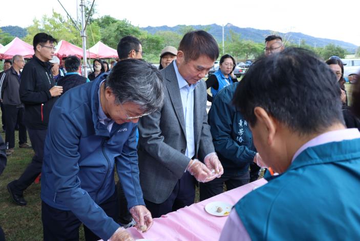 13日苗栗縣長鍾東錦、農糧署北區分署長林傳琦、農村水保署台中分署長陳俊榮、議員黃芳椿、銅鑼鄉公所祕書賴文良、代表會主席林九炲、農會三巨頭以及地方民意代表等人,共同為22、23日的銅鑼杭菊芋頭節揭開序幕,並製作杭菊養生丸,品嘗杭菊、芋頭等美味料理。