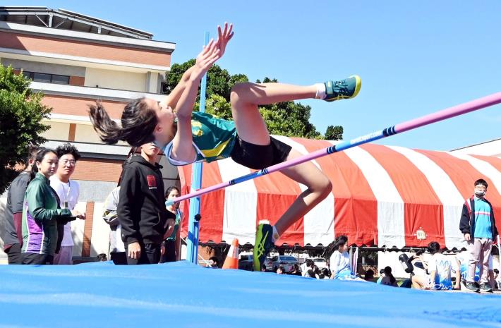 竹南國中今天適逢79週年校慶,除舉行新建光電球場啟用典禮,也擴大舉辦運動會和趣味競賽,學校熱舞社學生也帶來熱歌勁舞熱鬧慶祝。隨後縣長鍾東錦也為學校女籃隊在新啟用的光電球場的第一場訓練賽主持開球。