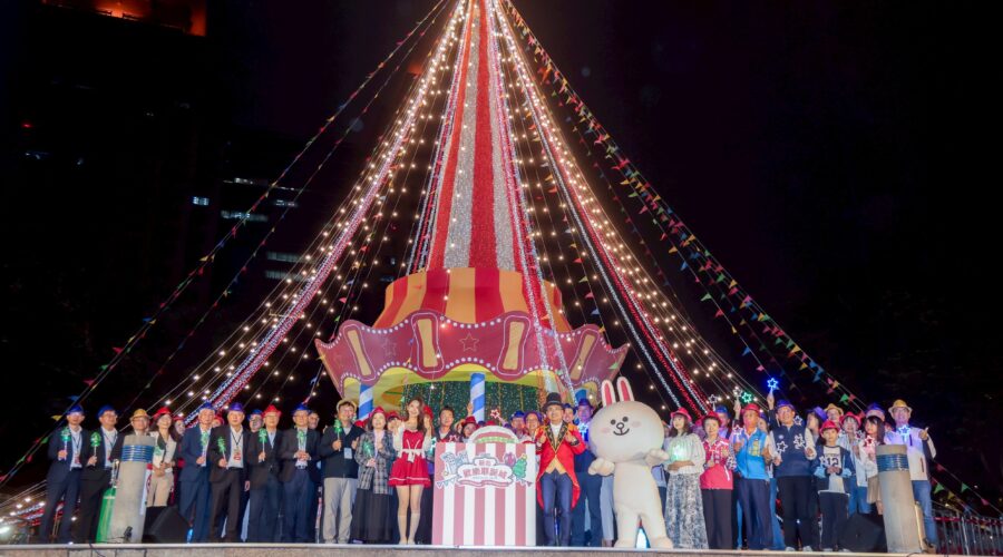 眾所矚目的「2025新北歡樂耶誕城」今(14)日盛大開城,由震撼全場的馬戲團開城秀揭開序幕,新北市長侯友宜化身馬戲團團長,攜手啦啦隊女神李雅英與 LINE FRIENDS 人氣角色兔兔共同亮相,為這座全臺冬季焦點盛典點亮華麗序幕。隨著點燈儀式啟動,為期45天的耶誕系列活動正式展開,邀請全家大小一同來新北感受濃厚的節慶幸福感。