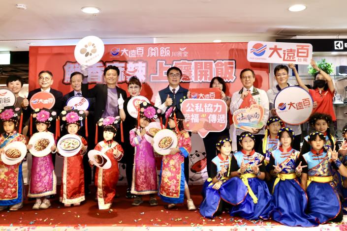以正宗川味聞名的「開飯川食堂」進駐台南大遠百成功店,今(17)日舉辦開幕儀式,台南市長黃偉哲受邀出席,代表市府接受饗賓餐旅集團捐贈給身心障礙者家庭享用的100張餐券,他感謝企業取之於社會,用之於社會的精神,歡迎大家到溫暖的台南享用美食。