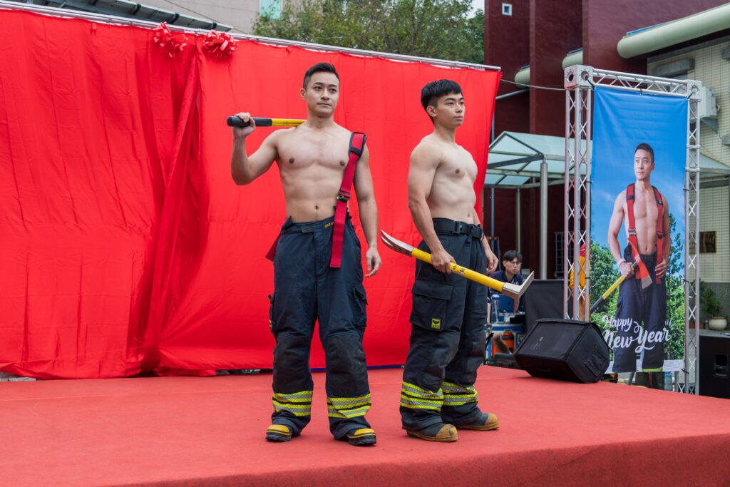 嘉義縣長翁章梁、消防局長蔡建安、副局長沈廷衡、警察局長李權哲、義消總隊總幹事呂文正、溪口防宣分隊長劉惠萍等貴賓一同揭開馬年猛男桌曆首發,喊出口號「馬上平安,消舞吉」,象徵消防、警察合作使命必達。