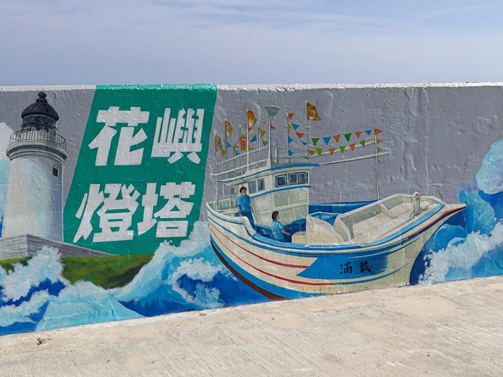花嶼海堤為連繫當地漁港及村民住所之必經道路,長年受海風侵蝕、風吹雨淋影響,牆體損壞、牆面斑駁不堪且原有彩繪圖樣顏色褪去,為提升當地交通安全及維護社區文化色彩,本府已於今年10月完成當地海堤修補,並以當地特有海洋生物為題進行彩繪,在符合當地海洋文化的前提下,力求展現一個嶄新的花嶼風貌。