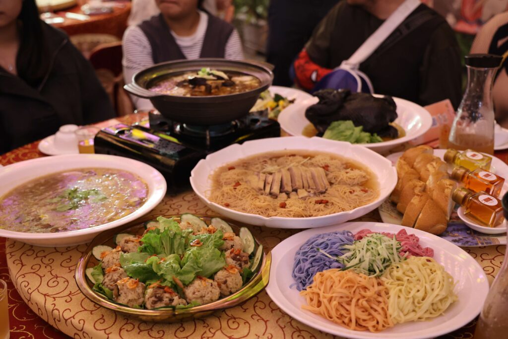 晚間宴席以品珍香麵包與順成油廠聯手的花生香吐司,以及海王子茶飲揭開序幕,再由阿海師鴨肉麵線、怪人花枝鱔魚羹、川龍食堂扁魚白菜、烏雞郎蒜頭薄荷烏骨夯雞、珍和蟹老闆結合萬源製麵舖推出的拳頭飯糰與涼麵等料理接續上桌,每一道菜皆融合地方食材特色,展現土庫風味與生活文化。尾聲則由古早味雙糕潤店與樂米工坊的米蛋糕作為壓軸,為整體餐席畫下甜美句點。