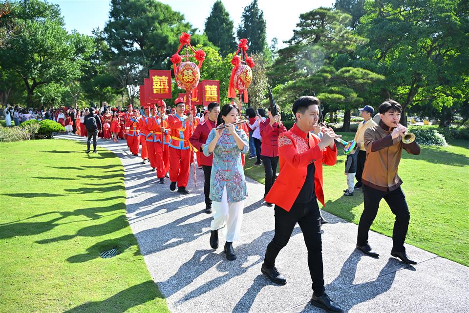 成美文化園區執行長薛樂山表示,歡迎新人來到成美文化園區,成美文化園區種許多松樹,松屬長青,代表所有的新人都能幸福久久、永浴愛河、白頭偕老、早生貴子。