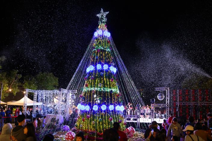 《2025幸福台南.耶誕點燈》今(29)日在民治市民廣場熱鬧登場,活動除有豐富文創市集及親子DIY、小小波麗士、北極熊遊樂氣墊等攤位,並邀請金鐘獎主持人陳凱倫及新光之星謝聖凱、軍中情人周子寒及新營囝仔音樂鬼才鄭進一等藝人精彩演出,吸引眾多民眾前來參與。台南市長黃偉哲更於晚間親臨會場,帶領現場貴賓一同點亮耶誕樹,為活動掀起最高潮,也宣告耶誕節即將來臨!