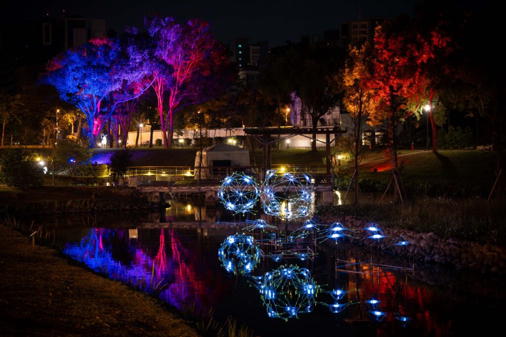 今年將展出8組藝術家及藝術團隊的光藝術裝置,包括林書瑜《水月銀灣》、高德亮《微風》、周柏慶《綻放的聲音》、沃手工作室《光穗》、林國瑋《SWEET NIGHT》、李謙宏與李城誌《逐光》、原有機製《落雨》,以及UA Studio與學童共創的《亮晶晶小怪獸》。作品以「閃爍」為共同語言,有的像呼吸、有的似星光,透過不同光節奏與自然律動對話,讓民眾走在東興圳畔,感受到日常風景的光之詩篇。