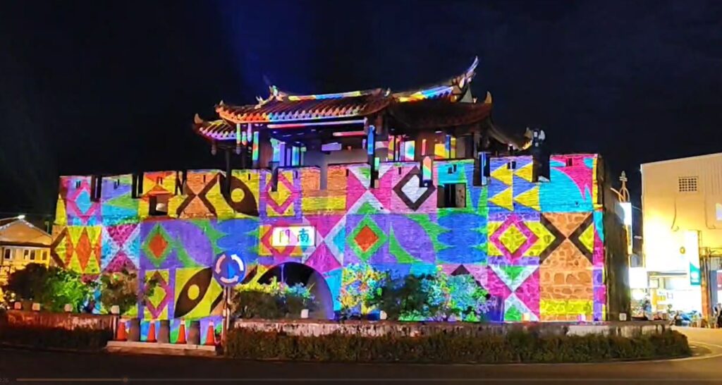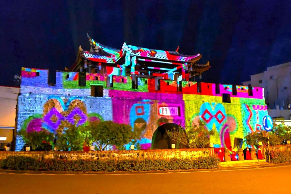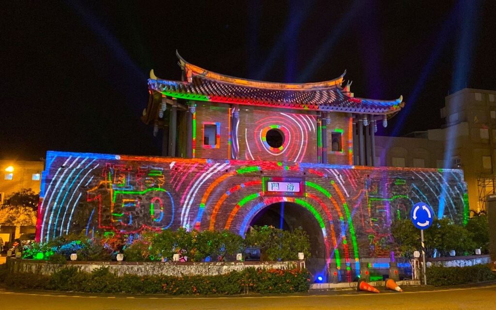 屏東縣政府以光影藝術點亮古城歷史風華,南門在夜晚華麗變身為時光舞台,以合奏(土地的樂章)、 蘭花(春天的筆跡)、月琴(夢的序曲)、原民意象(身體的律動與天空的對話)、落山風(山海之間的氣流)、城牆(時間的眼睛)等六大段落為主題,細細訴說恆春半島的歷史軌跡,跨域音樂搭配大型光雕投影,打造沉浸式觀賞體驗。