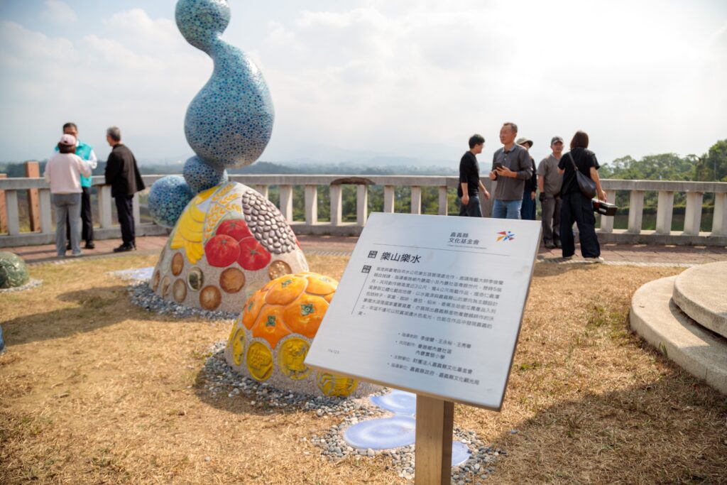 文基會執行長陳尚雍指出,作品命名「樂山樂水」,以水資源與嘉義縣山的意向為主題設計,包括柿子、茶葉、咖啡、番茄、稻米、香蕉及哈密瓜農產品入列,象徵水源是國家重要資產,顯現嘉義縣是物產豐饒耕作的沃土,不僅可以欣賞湖邊水色風光,也能在作品中發現嘉義的美。