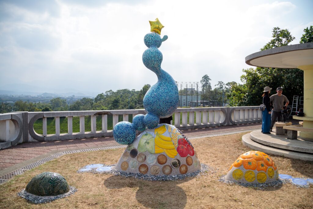 翁章梁說,在公共空間放置大家的作品非常不簡單,尤其是社區長輩與學生親手做出來的更難得,大家都有親手製作某一部分再拼湊而成,遊客到仁義潭湖畔就能欣賞有感情、有溫度的公共藝術,很開心看到青銀世代在作品裡尋找自己的痕跡。