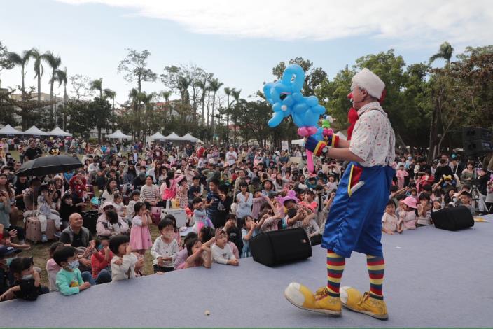 活動中,日本扯鈴冠軍、花式直立鈴創新者鄭湧蒼帶來令人目不暇給的精彩表演,三顆鈴、兩副棍子的高難度特技博得滿堂彩;而氣球創作及泡泡派對更是全場最吸睛的亮點,小朋友追逐繽紛泡泡、排隊期待專屬的造型氣球,現場充滿歡笑聲。舞台區的「如果兒童劇團」則以溫馨有寓意的「布萊梅樂隊」帶領孩子從故事中學習尊重、合作與勇氣,深受親子喜愛。