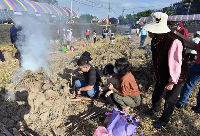 鍾東錦回憶自己小時候也最愛與同伴在田裡「焢窯」烤番薯,一般家庭有喜慶時也都會打糍粑(麻糬)。他說,今天看到參加的大人、小孩都玩得很盡興,覺得是很棒的文化活動。