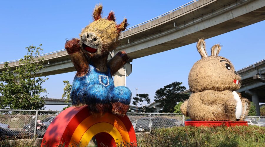 2025 大埤稻草酸菜季現場最吸睛的裝置藝術「稻稻仔」與「菜菜仔」以大埤在地代表性農產稻米與酸菜為創意發想,造型可愛,成為活動打卡熱點;搭配象徵生肖意象的「洛克馬」(台語:碌硞馬)與「金馬躍騰」大型草編作品,也展現三結社區多年來推動草編藝術的深厚底蘊與創意能量。
