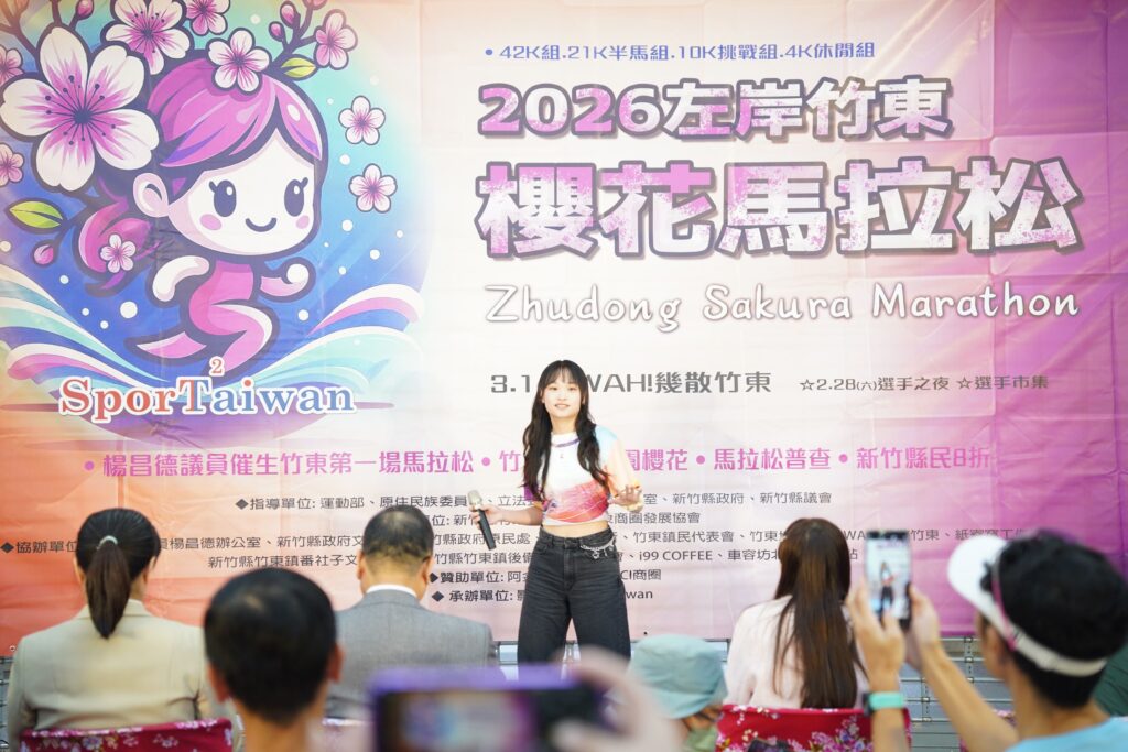 新竹縣竹東鎮為全台最大鎮,竹東頭前溪河濱公園每年春季櫻花盛開,為許多跑者練跑熱門地點,在新竹縣議員楊昌德及新竹縣竹東鎮火車站形象商圈發展協會積極推動之下,將於明年3月1日在竹東河濱公園舉辦2026左岸竹東櫻花馬拉松,活動記者會今(8日)於新竹縣政府舉辦,縣長楊文科邀請大眾共同參與,活絡在地觀光、促進產業交流,更認識竹東之美。