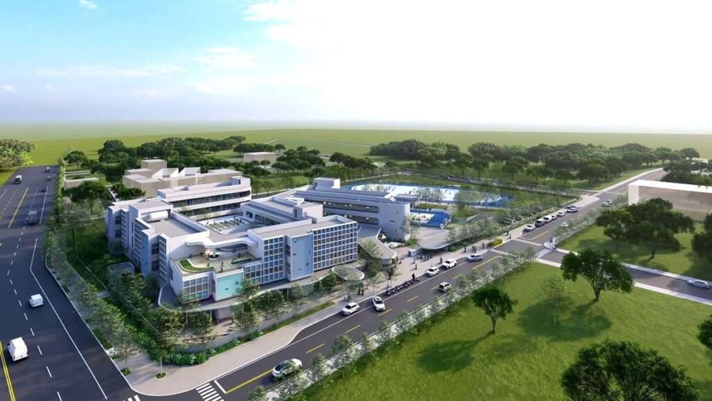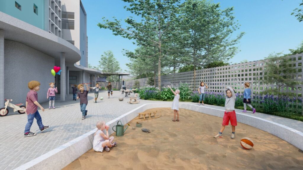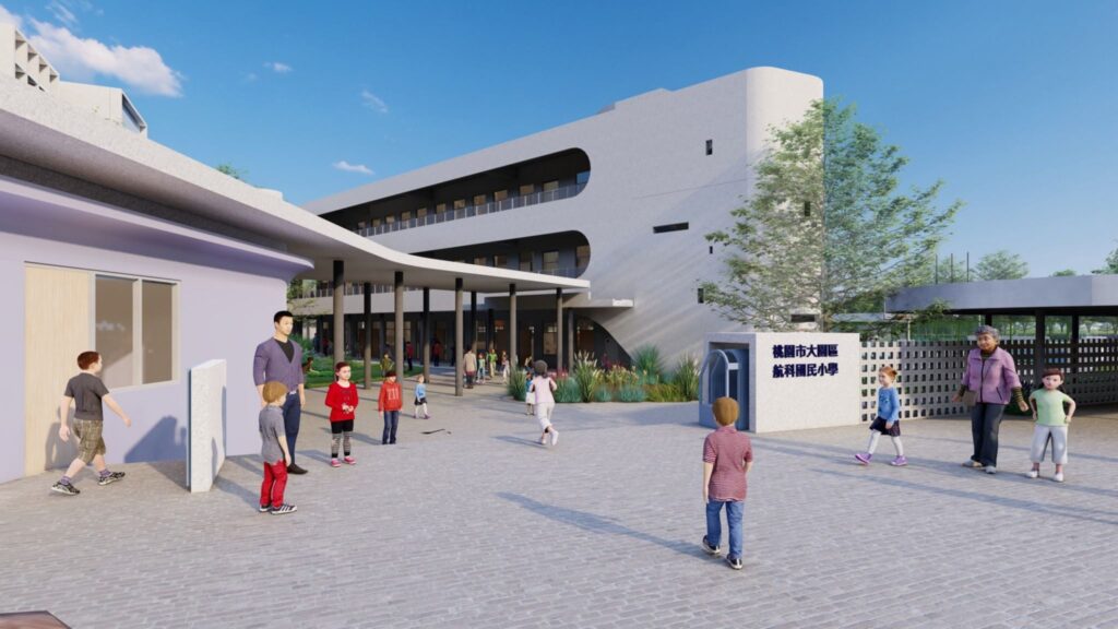 航科國民小學校區以「永續發展」為核心理念,全面導入綠建築精神,強調自然採光、通風與節能設計,以降低環境負荷。建材選用低碳、無毒且健康的材質,兼顧師生的安全與舒適,校園規劃生態景觀池、多層次植栽與雨水循環系統,營造兼具身心成長與永續教育的友善學習場域。校園入口處設置雨遮,為學生與家長提供安全舒適的接送空間;幼兒園則獨立規劃專屬出入口與活動區域,營造安心、友善的幼兒成長環境。工程完工後,將提供完善的小學與幼兒園學習空間,不僅滿足在地學童的就學需求,更打造兼具安全、健康與永續的教育場域。透過校園外部空間的開放,更可促進鄰里共享與社區共融,成為大園地區教育與生活發展的新亮點。