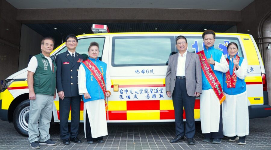 為回饋社會、保障鄉親生命安全,台中烏日先天豐龍聖道堂秉持慈善濟世的精神,捐贈新竹縣政府消防局新型救護車1輛,總價新臺幣392萬2,510元,並將配置於救護勤務量極高的新豐鄉山崎消防分隊,同時也捐贈300份物資給予社會處提供經濟弱勢家庭即時支援,捐贈儀式於今(8日)在新竹縣政府大廳舉行,由新竹縣長楊文科親自主持,表達對先天豐龍聖道堂的肯定與感謝。