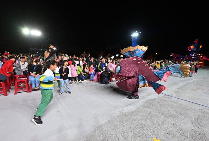 縣長鍾東錦、縣府文化觀光局長林彥甫、客委會藝文傳播處處長廖美玲和地區議員晚間也到場與鄉親同樂,陪著滿場鄉親一同走進奇幻的「燈怪」宇宙,體驗全新客家童話。