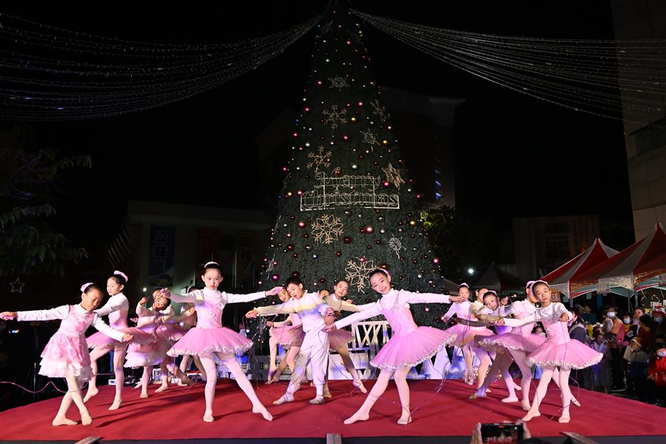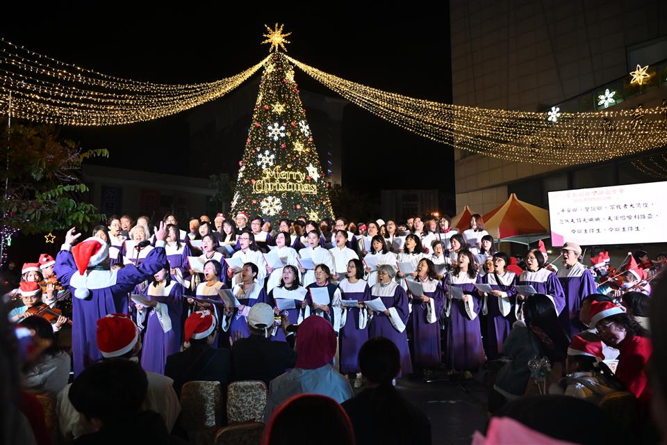 為迎接聖誕佳節,彰化縣政府於縣立美術館前廣場打造10公尺高的夢幻聖誕樹,攜手彰化縣音樂河社會福利協會於今(14)日下午舉辦「2025愛在彰化聖誕嘉年華園遊會暨點燈活動」,由縣長王惠美、彰化縣音樂河社會福利協會創辦人阮慧玲等人共同點亮聖誕樹。王縣長表示,聖誕樹主燈將自即日起展出至明(115)年3月1日,主燈高達10公尺,每日亮燈時間為17時30分至22時。緊接著「月影燈季」將於12月27日登場,為迎接馬年的到來,特別把八卦山大佛風景區打造成可愛歡樂的「跳跳馬戲團」,同樣展出至明年3月1日,歡迎民眾蒞臨觀賞。