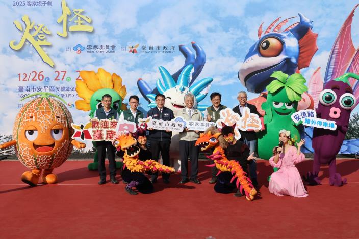 由行政院客家委員會攜手紙風車劇團全新打造的2025客家親子劇《燈怪》,將於12月26日至28日連續三天、每晚7時,在台南市安平區安億路路外停車場盛大演出。台南市政府今(17)日於永華市政中心舉辦宣傳記者會,市長黃偉哲親自出席推薦,邀請市民朋友前來安平「打怪」,一同感受奇幻又溫暖的客家文化魅力。