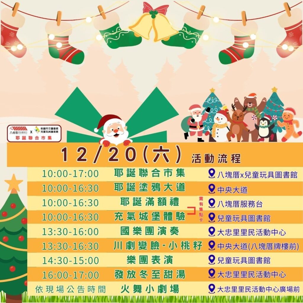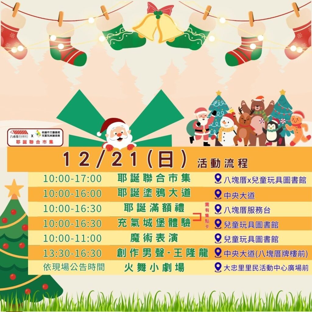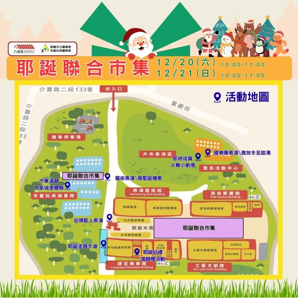 今年的耶誕聯合市集,不只是市集,更邀請養護工程處及里民一起共襄盛舉,打造公園、社區、家庭一起共創的生活節慶。耶誕市集後,園區熱力將持續延燒到12月27、28日,還有更多精彩活動,邀請大家帶著家人、揪著好友,在森林公園散步、逛市集、看表演,享受輕鬆、溫暖的歲末活動,詳細資訊請至八塊厝民俗藝術村官網(https://www.bakuaicuo.com.tw/)、八塊厝民俗藝術村臉書粉專(https://www.facebook.com/bakuaicuo)、兒童玩具圖書館(https://www.facebook.com/tyctlib)查詢。