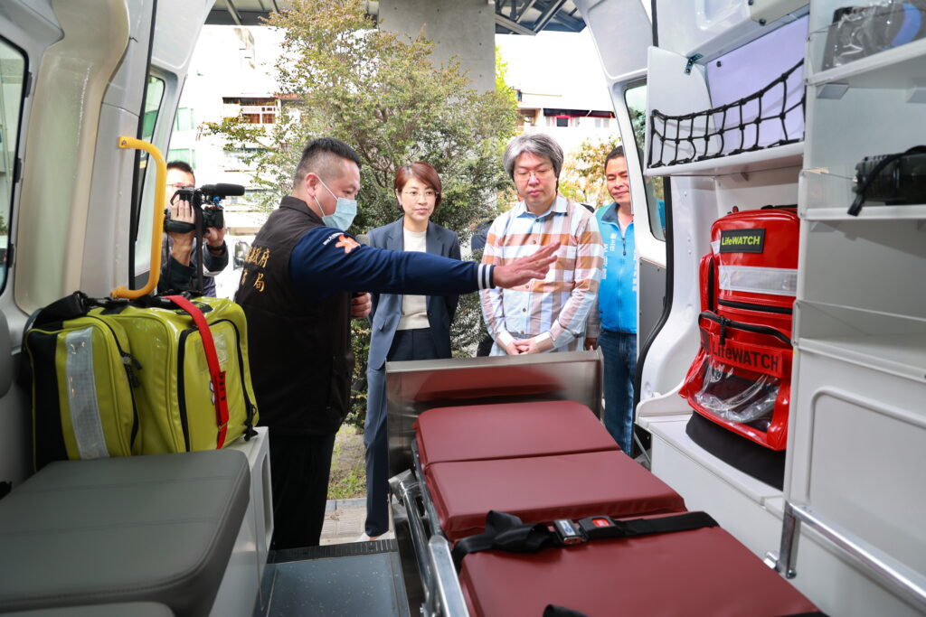 消防局長陳興傑感謝富宇建設善舉,指出這輛高頂救護車內部配備先進器材,包括到院前心臟監測及抑制處理設備,可在運送過程中即時傳輸病人資訊至醫院,讓醫療團隊提前準備。特別對南投縣高齡人口較多的特性,這項配備將大幅提升心血管疾病等急症的救治效率。