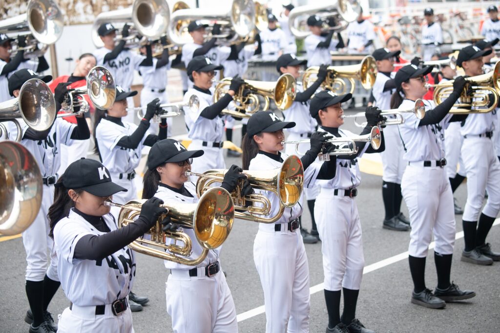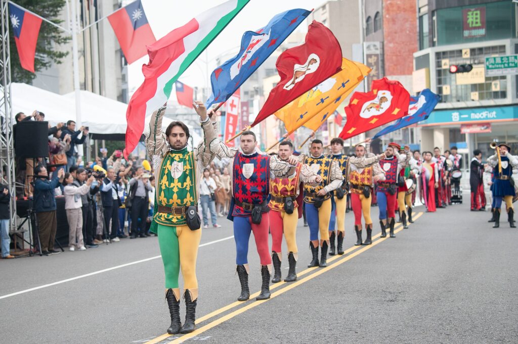 今日活動現場由2支來自義大利與日本的優秀隊伍擔綱演出。開場表演為歷史悠久的「義大利科里羅尼中古世紀管樂旗隊」,他們來自義大利中部的歷史名城—科里羅尼(Corinaldo),致力於重現義大利中世紀城邦文化,以戰鼓、號角與旗舞打造出宛如古代慶典般的盛大儀式,瞬間讓市府街道化身中古世紀的義大利廣場!接著由「日本奈良學園大學行進樂部」壓軸演出,奈良學園已連續8年入選全日本行進管樂全國大賽,並獲得2次金賞、5次銀賞殊榮,實力卓越,為日本行進樂界的佼佼者,以精湛的表現與充滿活力的演出風格,掀起現場高潮。
