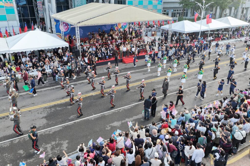 國際團隊的踩街演出同樣吸引目光。來自日本的奈良學園大學行進樂部以青春洋溢的動感演出獲得滿場喝采;連續28年榮獲金賞的熊本工業高校吹奏樂部以精準步伐與震撼音場掀起高潮;首次來臺的香港普音步操樂團與格蘭風笛聯合樂團,融合步操鼓與蘇格蘭風笛,展現罕見的跨文化音色;韓國濟洲海女歌舞團則以百年海女文化為創作核心,透過歌舞與象徵性動作,細膩呈現人與海洋共生的文化故事。多位國外團員表示,嘉義市民的熱情回應令人難忘,沿途不斷的掌聲與加油聲,成為最珍貴的演出能量。