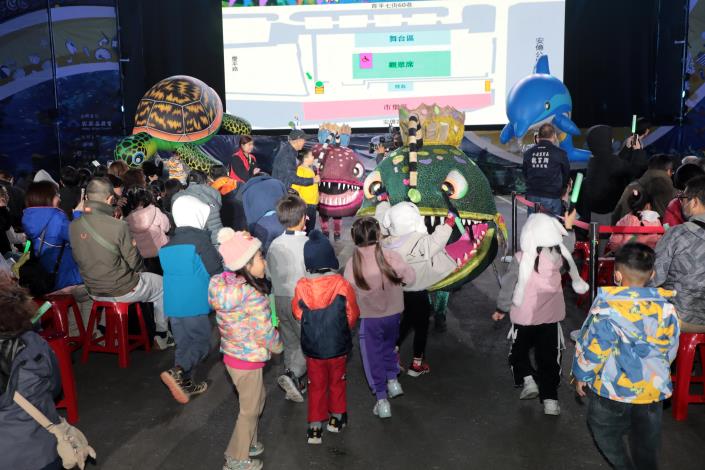 由行政院客家委員會攜手紙風車劇團打造的2025全新客家親子劇《燈怪》,今(26)日晚間於台南市安平區安億路路外停車場熱鬧演出,吸引大批親子家庭到場觀賞,共度充滿歡笑與想像力的夜晚。市長黃偉哲親臨致詞,邀請市民朋友把握明後(12/27-12/28)兩日來安平一同感受奇幻又溫暖的客家文化魅力。每場演出前特別規劃「唱〈瓜瓜歌〉送小燈怪」親子互動活動,邀請大小朋友一起唱歌,並有限量小燈怪驚喜小禮,送完為止。