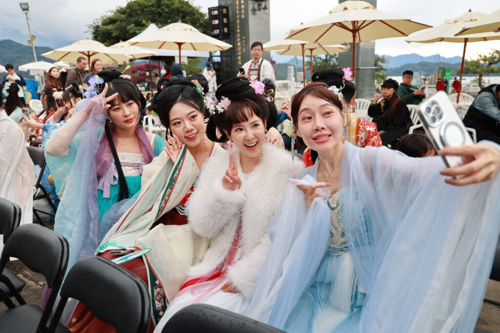 這項活動邀請文化推廣代表,身著古裝漢服,上午先到埔里地母廟巡禮,下午再到日月潭文武廟舉辦開幕式,身著古裝的民眾,出現在廟中,宛如時光倒流,不僅引起遊客注目,優雅漢服襯托寺廟的建築,另有一番風情。