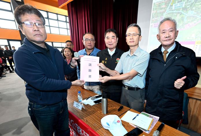 後龍鎮長謝清輝、代表會主席花麗卿11月25日率領地方里長、代表前往議會,向縣長鍾東錦遞交5288份鄉親同意書,表達地方心聲。後龍地區議員鄭秋風、林寶珠、廖秀紅及議長李文斌秘書李文星也到場聲援,希望公路局聽到地方的心聲。