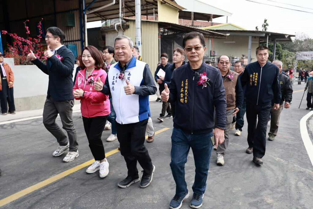 副縣長王瑞德、內政部國土管理署中區分署副分署長黃永興、立法委員羅美玲、縣議員吳棋楠、張婉慈、沈夙崢、名間鄉長陳翰立、鄉代會主席吳金樹及多位代表、村長及近百位鄉親都到場觀禮,除持香敬拜祈求平安外,也進行剪綵通車儀式,並在當地的大賢宮開漳聖王神駕及大鼓隊帶領下,走上全新完工的馬路上,實際體驗平坦寬敞的道路設施。