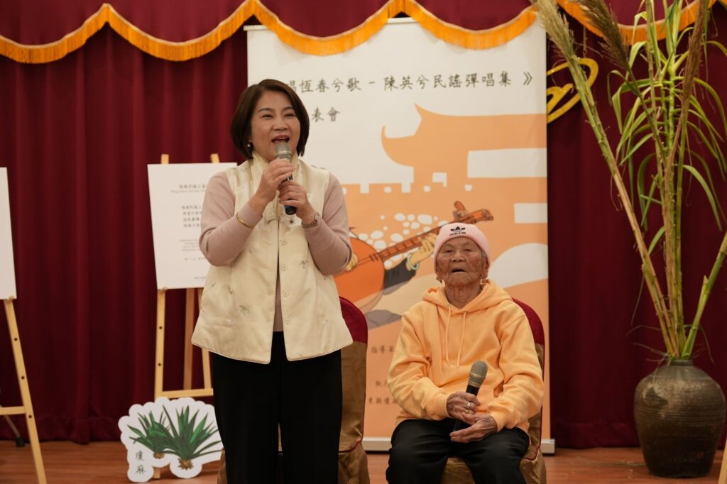 周縣長表示,恆春半島的民謠,是從土地長出來的歌,縣府十分榮幸,繼去年發行恆春建城150週年紀念專輯《春城小唱》,廣受歡迎,今年迎來二部曲──《唱恆春兮歌:陳英兮民謠彈唱集》專書出版,陳英阿嬤以一生的歲月,將日常生活化為詩詞,將生命經驗譜成歌聲,因為有像陳英阿嬤這樣的傳藝師代代傳唱,縣府才有機會系統性整理恆春民謠出版,讓更多人看見珍貴的文化。