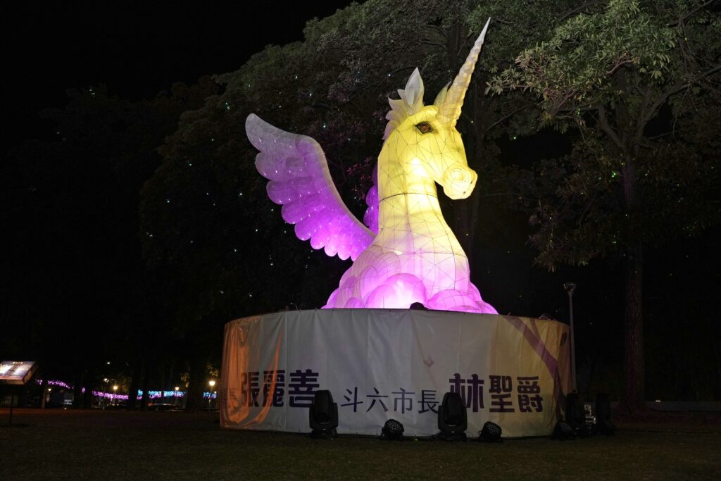 斗六市公所表示,2026年斗六燈會展期自即日起一路延續至3月31日。主燈以象徵希望與祝福的純白獨角獸為主角,搭配雲朵、彩翼與多層次光影效果,在夜色中展翼飛翔,令人耳目一新。園區內並規劃多組特色燈區,融入斗六在地農產、趣味造型與藝術設計,透過燈光、造型與環境的巧妙結合,打造獨具風格的燈會景觀。